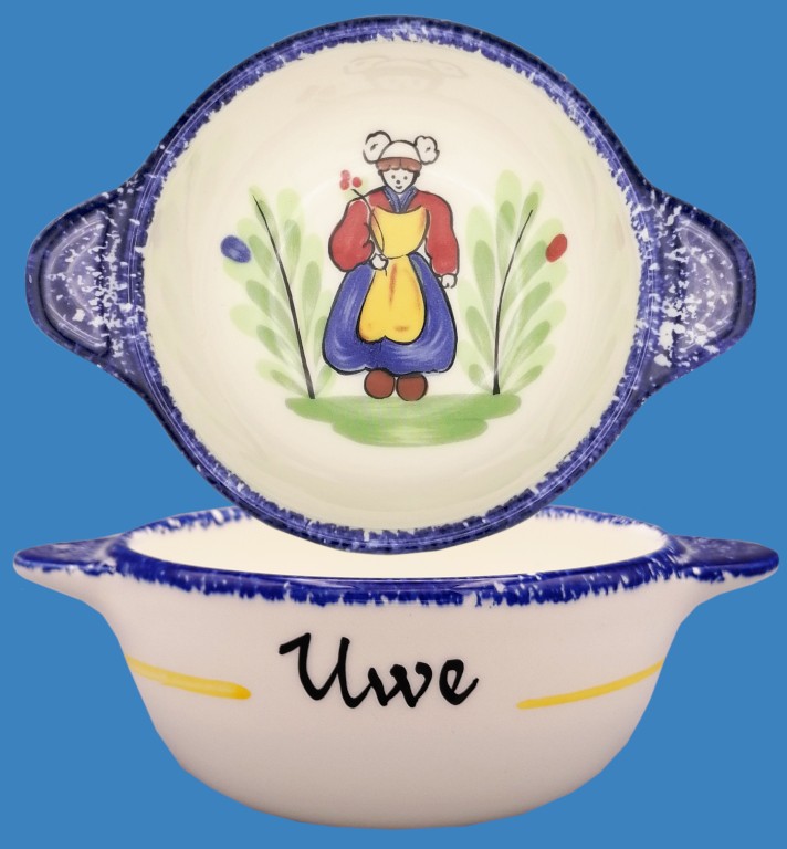 Ici, un filet jaune circulaire entoure le prénom de votre bol breton